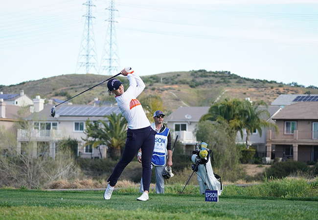 The event’s Thursday pro-am presented the opportunity for me and Louise to meet in-person. By way of Stockholm, Sweden, Louise segued to a standout career at UCLA from 2012-15, before turning pro in ’17 and making a home in Santa Barbara. Bouncing between the LPGA and Epson Tours, her marks may not be those of a world-beater, but she’s a world-class player, to be sure. Entering her sixth pro season, she’s made a dozen cuts in 36 tournaments on the LPGA, while authoring four top-10s and a 2018 victory in more than 40 events on the Epson.