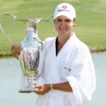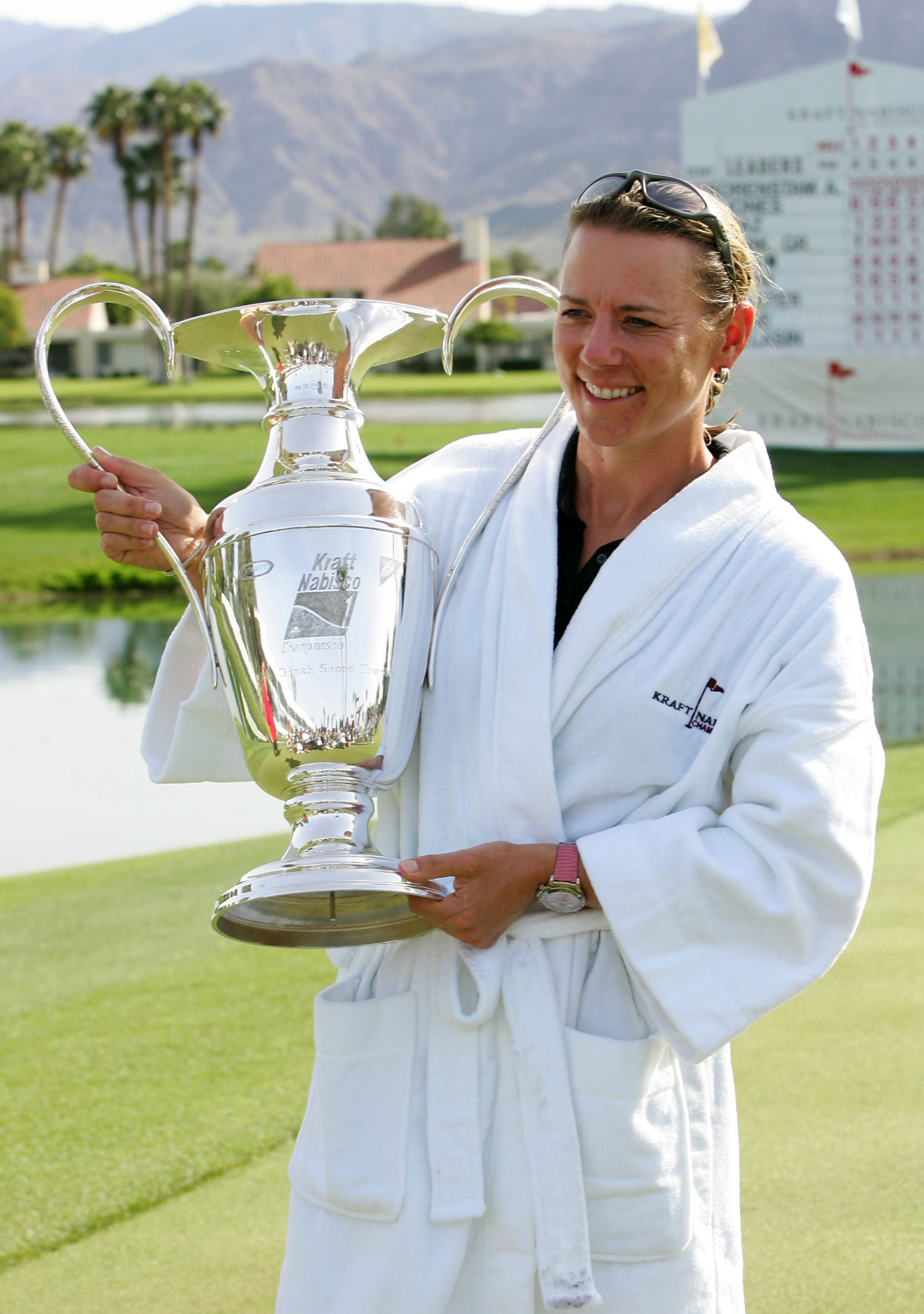 - Annika Sorenstam of Sweden poses with the Dinah Shore Trophy after winning the LPGA Kraft Nabisco Championship in 2005