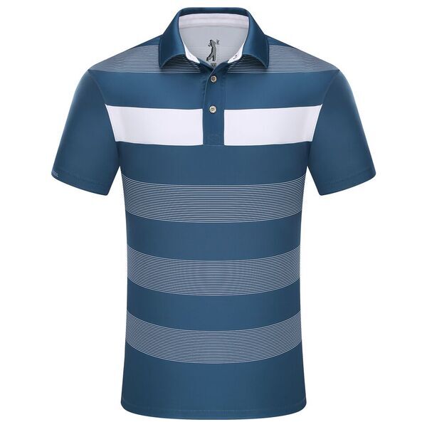 2nd Guy Golf’s Old School blue polo ($48) bears contrasting white stripes. Made of a 94 percent polyester/6 percent spandex blend, it maximizes comfort. How so? It features