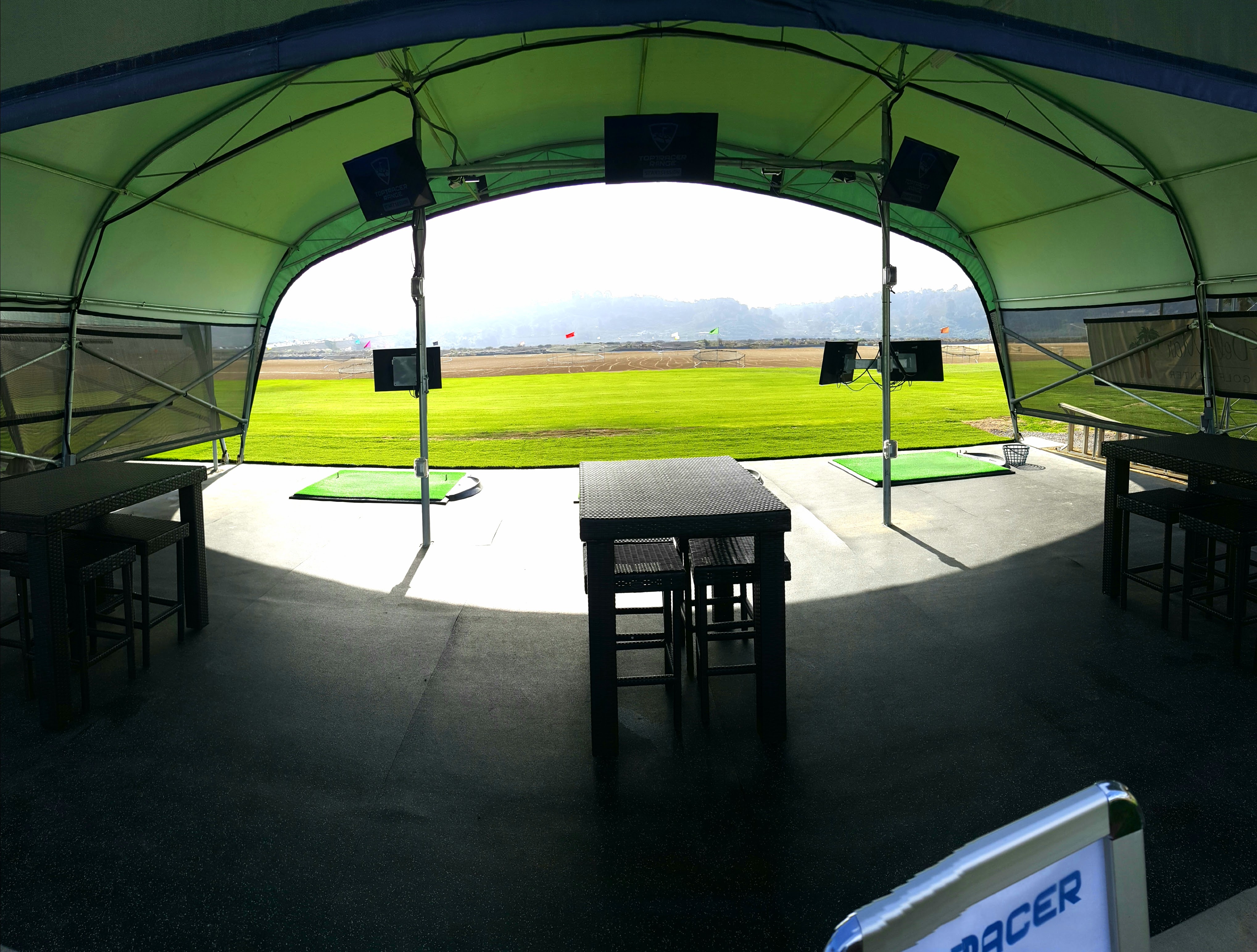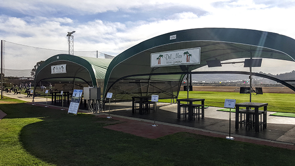 Officials at the range recently converted six of the tees to electronic ball launching systems. Covered with tent tops and bolstered by computers, lounge chairs and tables, these six tees are now wirelessly connected to Top Golf’s TopTracer Golf system. Every golf ball struck from those tees is being tracked all the way to its landing spot, through an electronic grid that’s also calculating shot data all the way. And it’s completely transforming the driving range experience for range-goers.