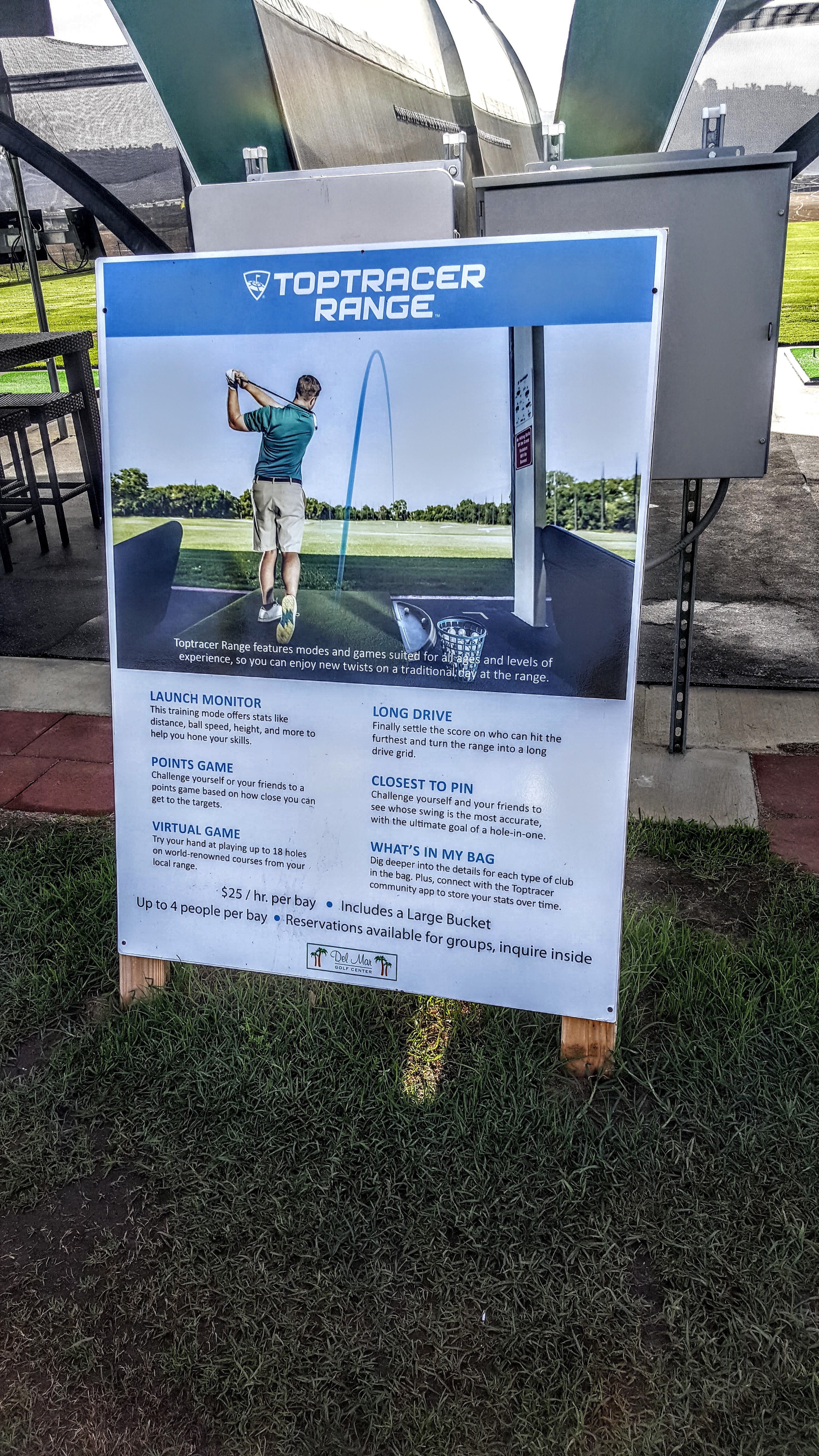 Del Mar Golf Center charges $25 for an hour on the tee — regardless of how many players you have. So you can split that $25 several ways, if you want. The fee includes a massive bucket of 105 balls, but you can get more balls as you need.