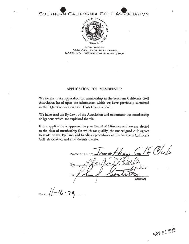 The Jonathan Club is one of Los Angeles’s most storied private institutions, a downtown social club whose golf membership included names from The LACC, Bel-Air CC, The Riviera CC, Wilshire CC and Lakeside GC. In 1979, it was, by current standards, a product of its era, precisely the kind of institution the SCGA board would find comfortable.