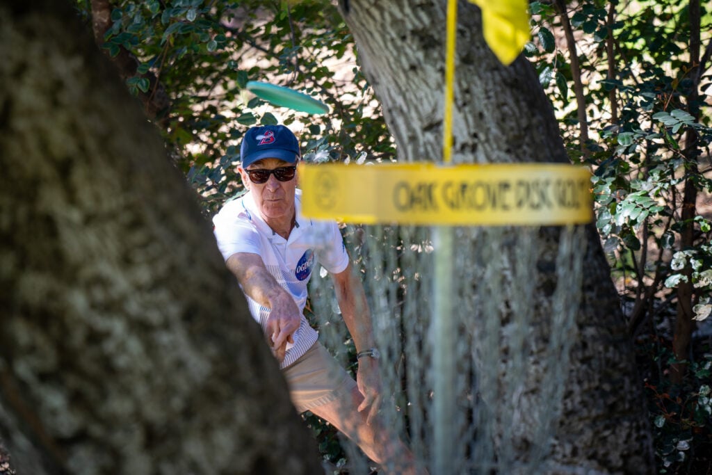 When Annear discovered disc golf in Huntington Beach’s Central Park, he was drawn to its simple pleasures. “It’s just very satisfying to throw a Frisbee® and watch it fly. And when you get control of it, then you can start shaping it around objects, landing it softly in different ways and skipping it and bringing it in. It’s such a simple game. Get it in there as quick as you can and don’t throw it where you’re not supposed to.”