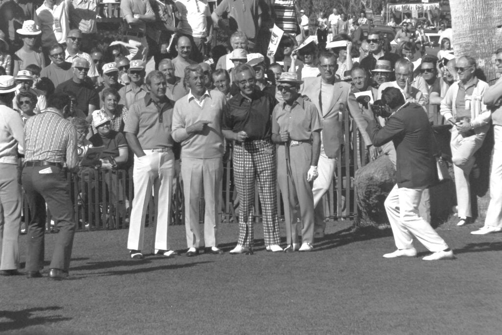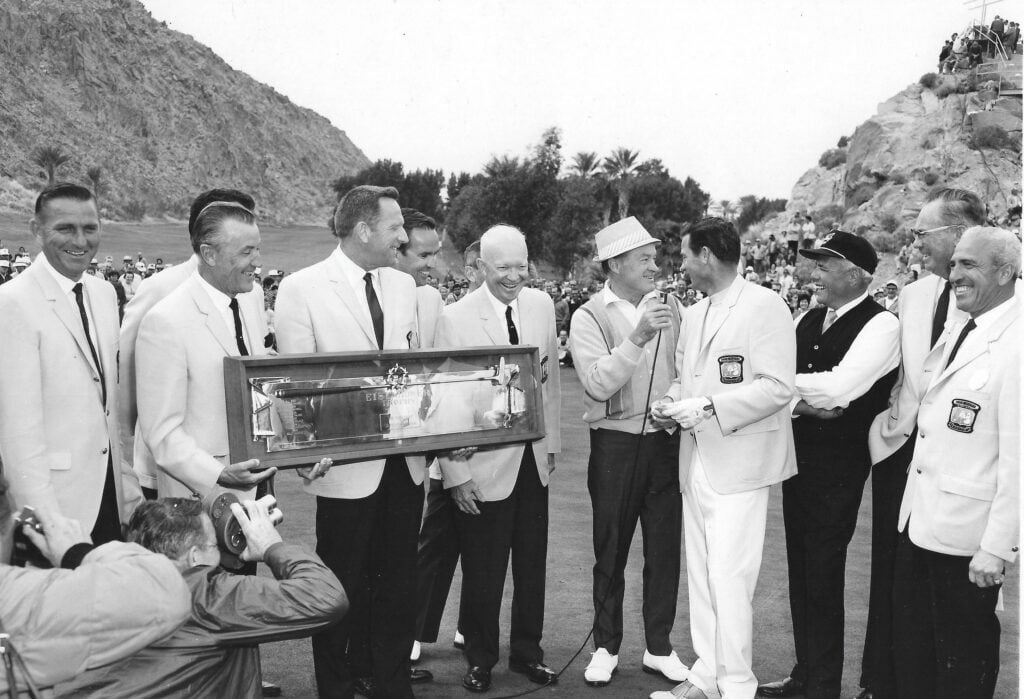 Drawn by Bob Hope’s luminary lure, the event cemented Palm Springs and the Coachella Valley beyond as a “playground to the stars.” Sinatra played in this pro-am, as did Dean-O and Sammy and Burt Lancaster and Jackie Gleason and Jack Lemmon; in later years, under different variations of the Hope, the tee sheet continued to brim, seeing the likes of Michael Jordan, Matthew McConaughey, Justin Timberlake and Samuel L. Jackson place tee to pro-am turf.