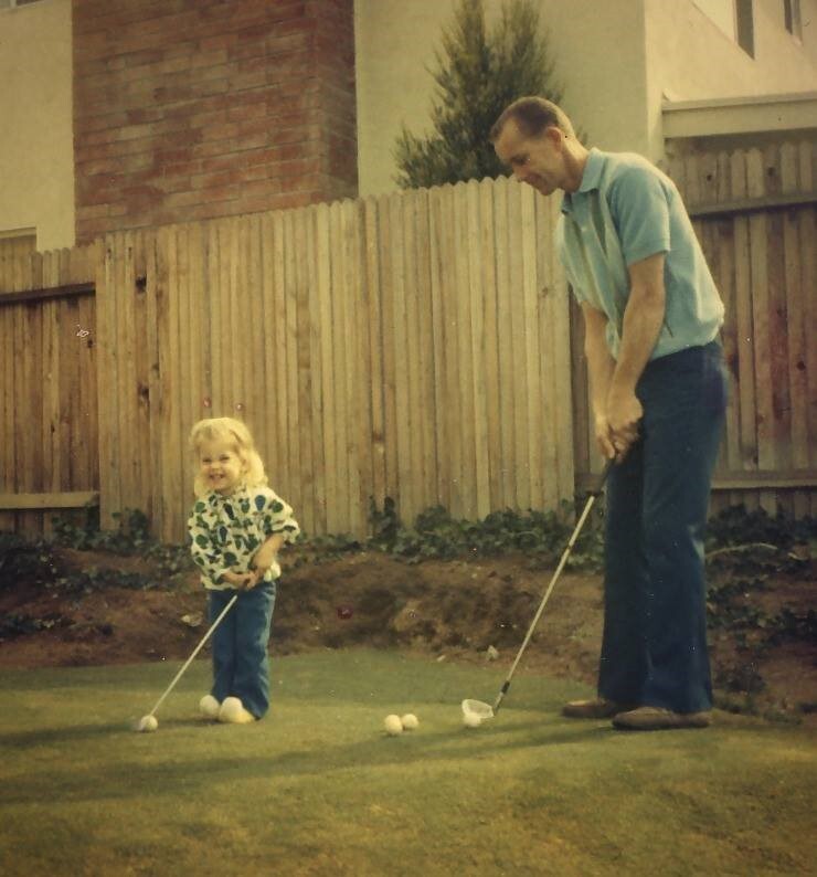 I asked the social media universe to share their memories of being with their fathers on the golf course, and they did not disappoint. I think my favorite share was one sweet daughter explaining how her dad didn’t play golf but once asked to tag along. He was wearing shorts with his wing-tips and knee-high socks and was just excited to be there. He was being “helpful” and pulled the pin. Great, right? Except he took the pin to the cart with him instead of putting it back and didn’t realize it for several holes. I laughed until I cried reading that one.