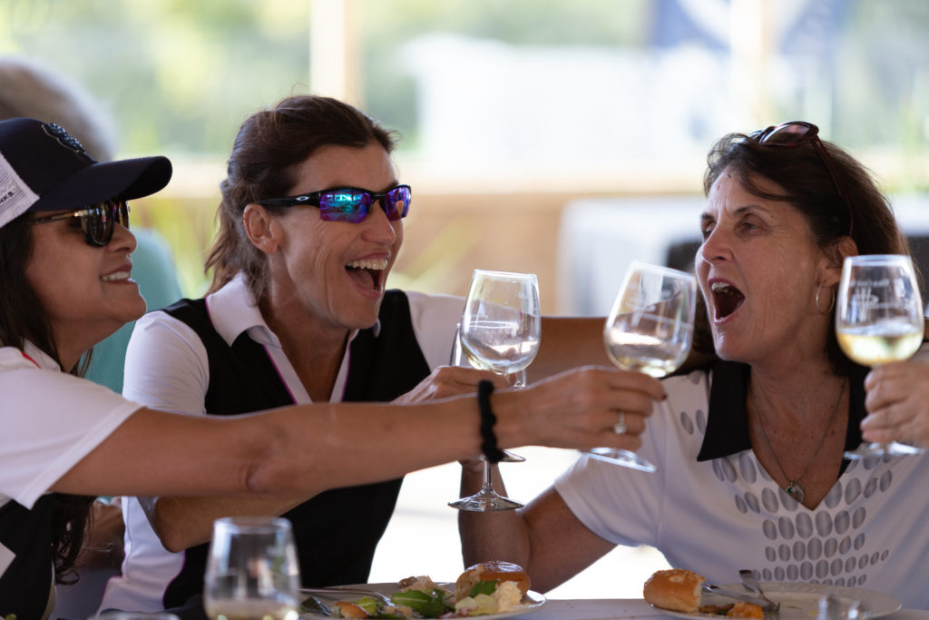 While I was on time, it seemed I was late as I watched women stroll around the patio with mimosas and flaky pastries in hand, sharing smiles and words with fellow women – all 80 of them. Many women came alone but finished the day with a new friend or two and a list of names for future golf dates. A well-lubricated bunch – thanks to the generous Wilson Creek Winery rep, who was not shy about handing out free samples – found themselves mingling at an all-time high.
