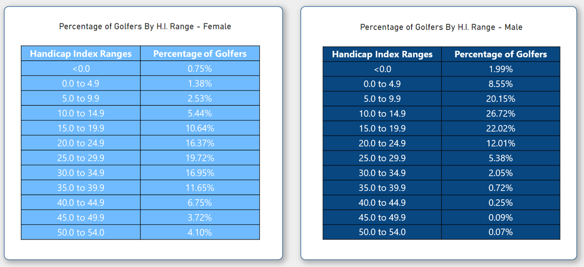 The World Handicap System™ has its nuances and complexities … there are formulas, calculations and procedures involved! In addition, there are lots of statistics associated with handicapping, including a breakdown of where golfers fit in relation to other golfers on the Handicap Index spectrum.
