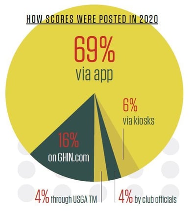 For several reasons, score posting via the GHIN Mobile App continues to increase. Nationally, some 66 percent of scores were posted via the app, while in Southern California this was slightly higher at 69 percent. Scores posted at course computers, known as kiosks, decreased from more than 30 percent in 2019 to approximately 6 percent in 2020. With physical facility and clubhouse access limited and/or closed at certain times, it makes sense that there was a decrease in posting at kiosks. Scores posted on GHIN.com remained around 16 percent both nationally and in Southern California.