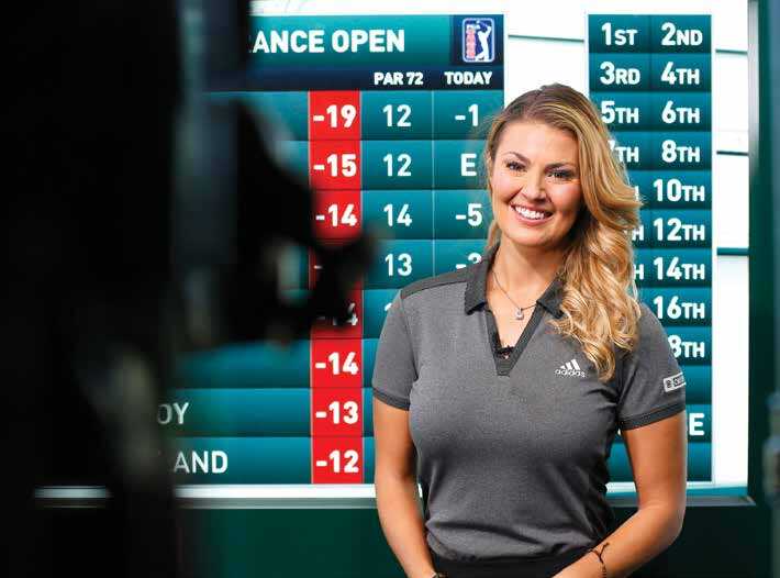In the span of a mere two years, the 33-year-old Balionis, who lives in San Diego, has become one of golf’s rising stars in broadcasting. She made her debut for CBS Sports at the 2017 Genesis Open at Riviera CC, and now she does interviews and analysis at all of the TOUR events for the network.