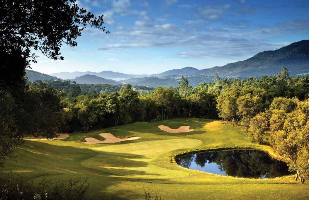 There are many visible reminders of Twain’s brief visit to Angels Camp, including a bronze statue of the writer sitting on a bench in front of the clubhouse at Greenhorn Creek Resort, where Robert Trent Jones, Jr. created 18 scenic holes for another master-planned community. This 6,749-yard layout also opened in 1996, and requires accuracy over distance on its sloping fairways. The tee box on the plunging par-3 13th offers up panoramic views of the surrounding foothills and of New Melones Lake.