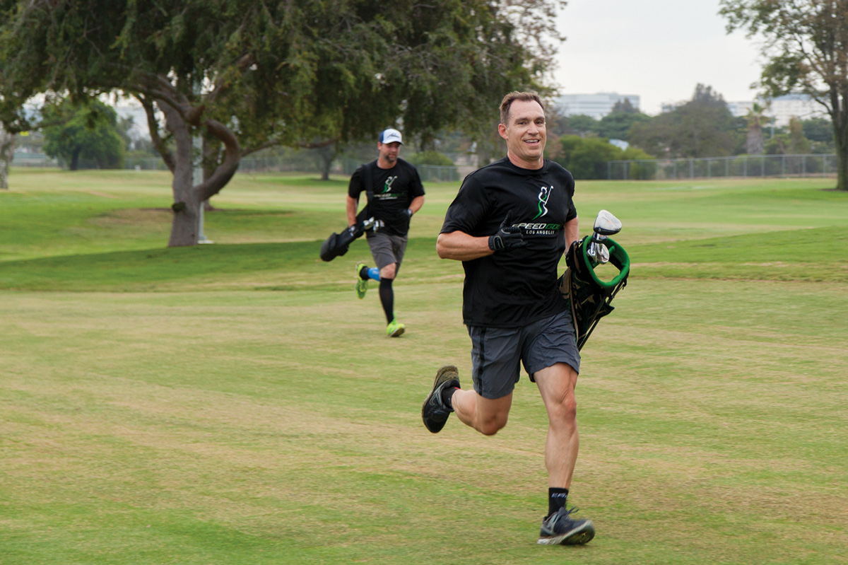 Enter Garlin Smith, founder and CEO (Chief Evangelist Officer) of Speedgolf Southern California (speedgolfsocal.com), a fitness-oriented sport combining golf and running. Same rules as golf, but players run, at their own pace, around the track for nine or 18 holes. Conservatively, a single can complete a nine-hole course, on average, in 30 minutes; 18 holes in about an hour and a half.