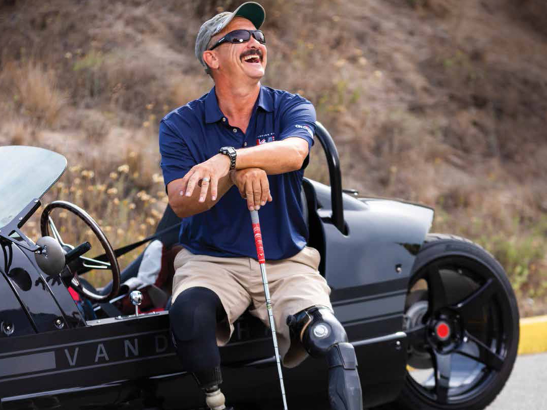 A former wrestler and football player, Jacque wasn’t much of a golfer before being “blown up,” as he often refers to it. It was his prosthetist at Walter Reed who first got him out on a course, and the nature of finding balance in a swing while on various terrains was invaluable to his progress.