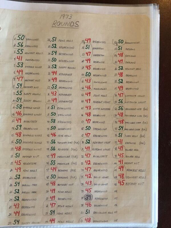 Kovacs, 67, played his first round of golf in June 1971 at the age of 24. Like many players, he immediately realized easily collectable data was available from each round, data that could help document his progress — or lack thereof. He saved the scorecards from his first few rounds, and has been able to chronicle his data from the very beginning. By the end of 1971, he had 30 scores recorded in his folder.
