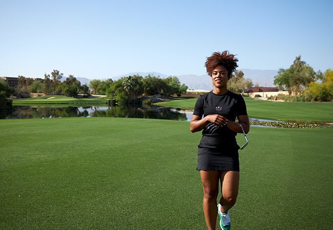 Mullins’ extended time in various spotlights has given her wisdom beyond her years. And she’s using her platform and experiences to champion meaningful change. “As much as we want to imagine the game of golf growing, it still has a long way to go. How are we going to grow the game? That question needs to be asked of the right people, the people you want to grow it with. Bring those people to the table. When you’re doing a collaboration for women’s fashion, why not bring in more women designers?”
