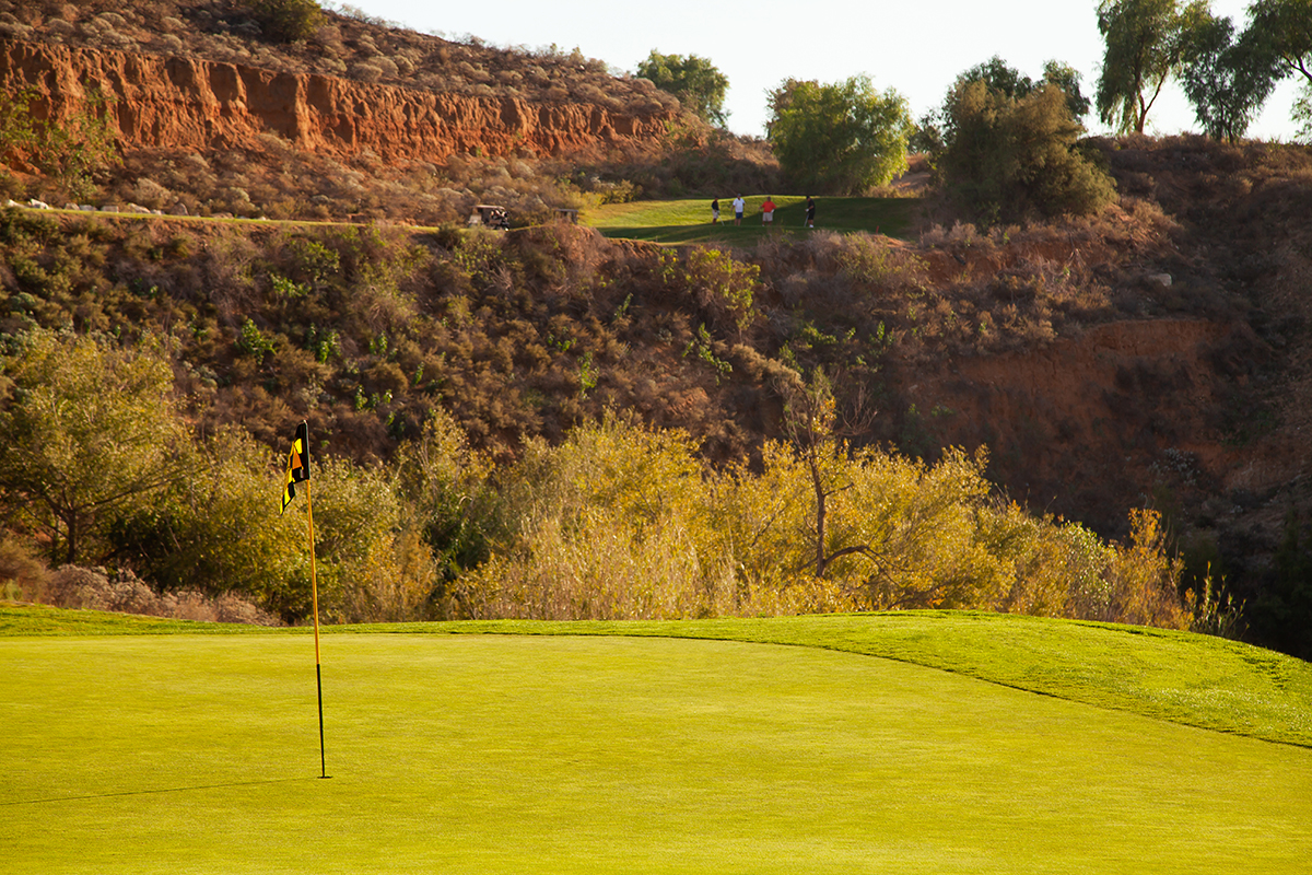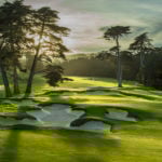 - Late day light on the 3rd green in the foreground and par 3 8th green in the distance at The California Golf Club in San Francisco.