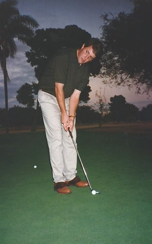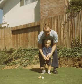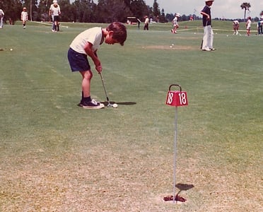 Speaking of practice, our Dad was (and still is) a golf addict, so much so that he constructed a little 20-yard golf hole complete with tee box, green and bunker in our back yard. Phil would practice out there for hours.