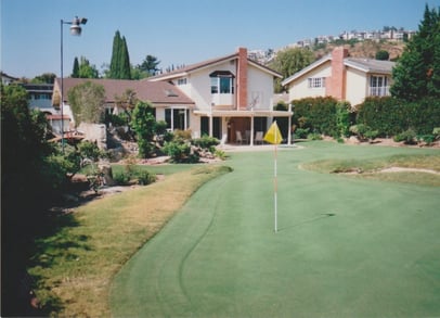 It took some time for the yard to evolve into what you see in these photos. At first it was just a little tee box in the corner by the patio, and a green as far back and across the yard as he could make it. In the early 80’s our Dad was able to start adding more grass to the middle of the yard and the little golf hole kept getting better and better.
