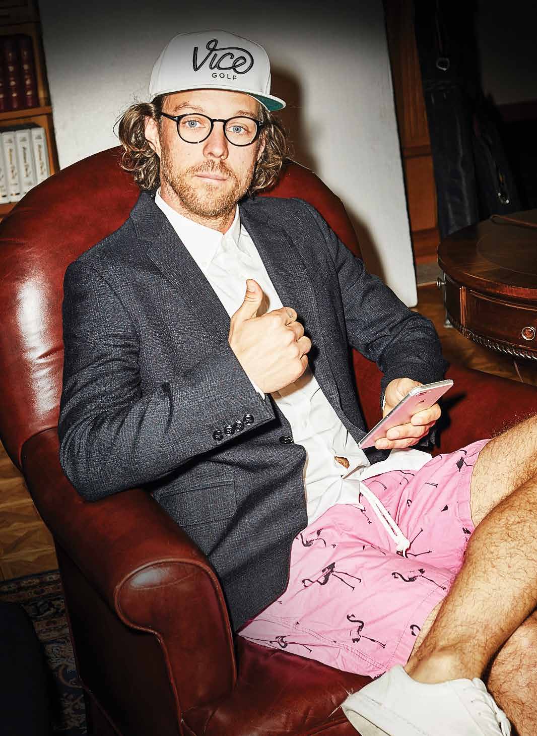 Erik Anders Lang is generally the funniest guy on the course. And probably the most disheveled. T-shirt, flowered shorts, unruly curly hair tumbling out from beneath a backwards ball cap. Which might make you think that this podcast host, Adventures in Golf video star/auteur, Instagram celeb and documentary filmmaker is something of a golf iconoclast.