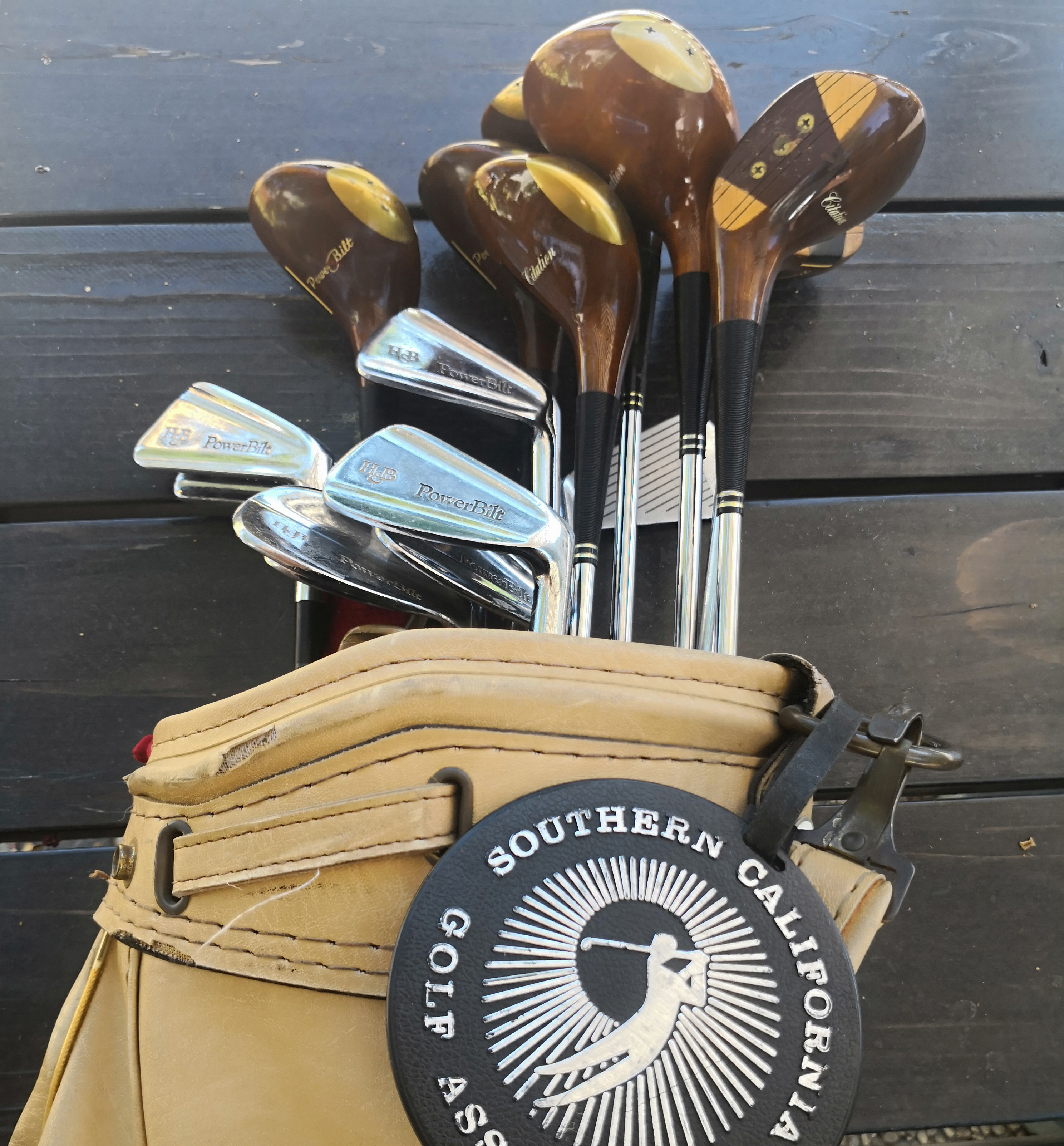 Here is where this potentially sad and tawdry tale takes a happy left turn. Upon closer inspection, I found a full set of forged Power-Bilt irons, four putters and half dozen pristine, Citation persimmon woods. Not a bad haul for a fiver — they’d look great gathering dust next to the giant, papier-mache frog in the garage!