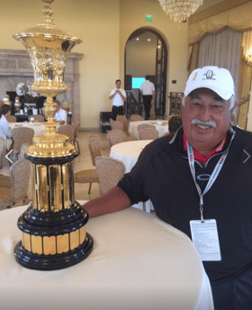 Ortega with the U.S. Amateur trophy. He volunteered at this year’s Amateur at Riviera CC.