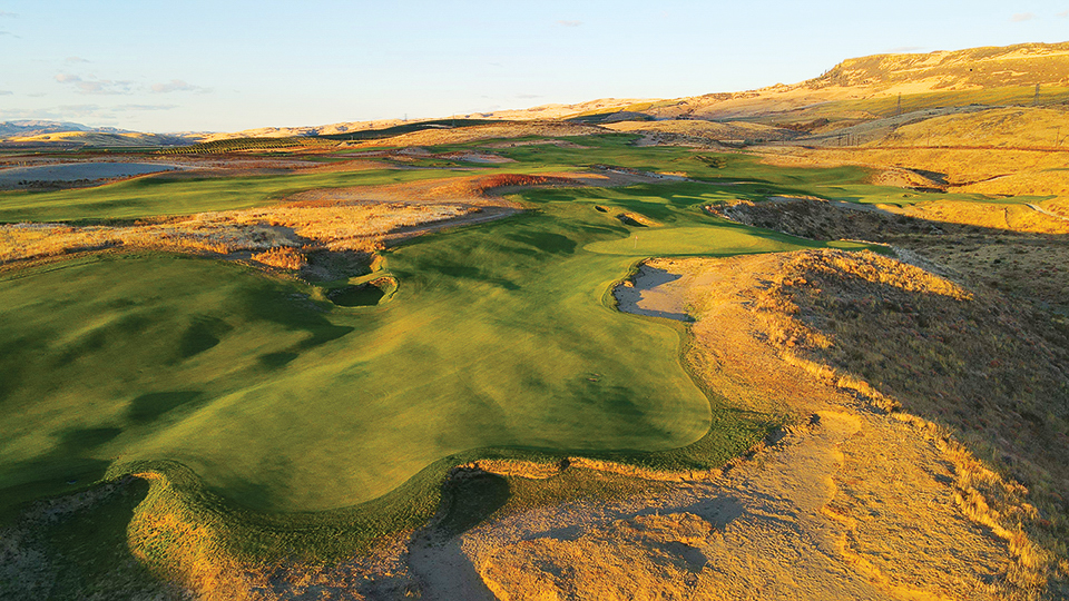 At 7:10 a.m., the sun peeks over the ridge and the sage-smothered plains are brushed with golden light. From my cozy room on the ridge, I can see a sliver of Scarecrow — the brand-new David McLay Kidd course at Gamble Sands — shimmering in the morning glow. I grab my photography equipment and make a dash for the door. Lights, camera, action.