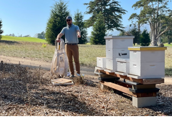 Anderson picked up the art of beekeeping after taking a course at Santa Barbara City College and apprenticing with the Beeman of Santa Barbara, Paul Cronshaw. It began as a hobby, but Anderson soon realized that bees could have a place on golf courses. “Bees are struggling. Everyone wants to help them. So, they’re supportive of beekeeping programs at golf courses.”