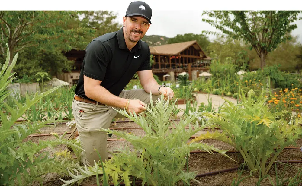 Not far from the butterfly garden, just outside the pro shop, is a plot planted for human consumption. The one-acre chef’s garden has repurposed a portion of the No. 1 tee box— not only for seasonal organic produce to supplement the larder of chef Ben Diaz’s Corkfire Kitchen, but also for an intimate event space. The garden also serves an educational purpose for at-risk youth who visit from nearby Oak Grove Center.