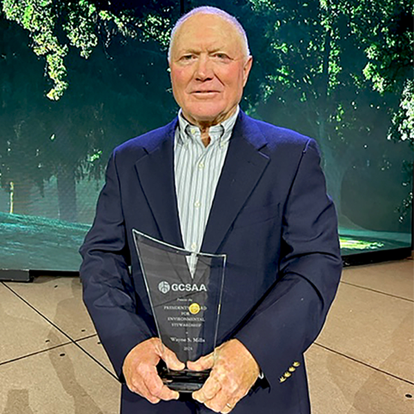 The 2024 Golf Course Superintendents Association of America (GCSAA) President’s Award for Environmental Stewardship couldn’t have gone to a more deserving recipient than Wayne Mills, who received the honor in February.