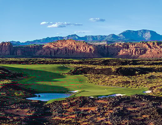 A kaleidoscope of rocks, cliffs and mountains greets visitors to St. George, which has long been renowned as the gateway to two legendary hiking and climbing destinations, Zion National Park (30 minutes) and Bryce Canyon National Park (two hours). As the sun changes positions, the color wheel flourishes, with showcase hues that include dusty pinks, brick reds, cocoa browns and vanilla whites. These days, however, it’s black and green that act as color magnets.