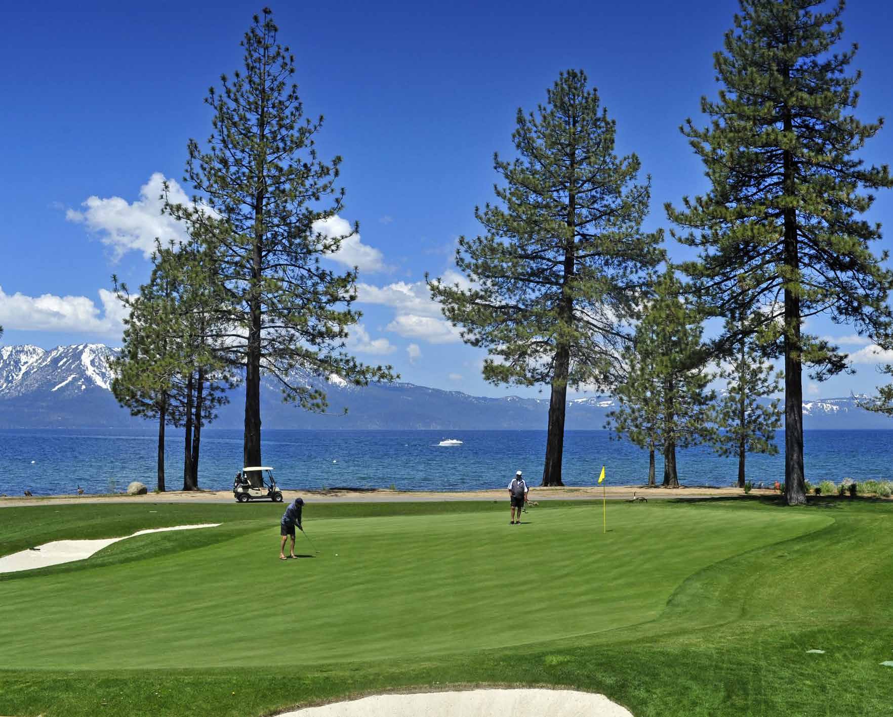 For a premier 18-hole quest and an opportunity to smack a golf ball across the state line, the ninth fairway at Edgewood Tahoe Golf Course, the lone course to physically border Lake Tahoe and the host venue for the annual American Century Celebrity Championship, offers that shot.
