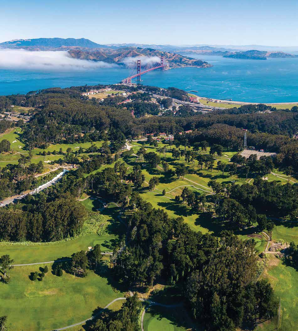 Unveiled in 1895, Presidio Golf Course is San Francisco’s oldest course, but the newest in the city’s public golf lineup. Originally, a group of civilians, who had formed the private San Francisco Golf and CC, were granted permission by the U.S. Army to build a nine-hole course overlooking the gateway to the San Francisco Bay on the military post known as the Presidio. In 1910, the course expanded to 18 holes, although military training occasionally still took precedence over golf along the fairways. With play once restricted to military officers and the likes of Joe DiMaggio, Babe Ruth and Dwight Eisenhower, the deceivingly long 6,481-yard hilly layout transitioned to a public facility in 1995, after the Presidio was decommissioned as an army base and became part of the Golden Gate National Recreation Area, a unit of the National Park Service. For locals and out-of-towners alike, it remains a mission worth the undertaking.