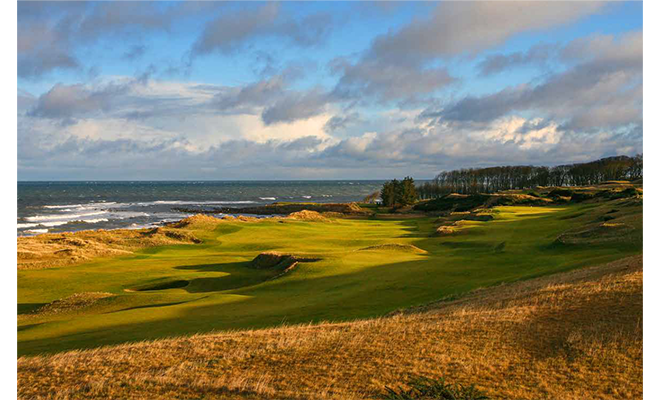 Co-host of the DP World Tour’s (formerly known as the PGA European Tour) Alfred Dunhill Links Championship, this 1999 Kyle Phillips design seven miles from the town of St Andrews sports a Top-100 World Ranking and a prime location along nearly two miles of the North Sea. It also garners the respect of links fans everywhere, particularly for such holes as the 606-yard, par-5 12th, which arcs around the bay, and the 212-yard, par-3 15th, which demands a carry over the sea.