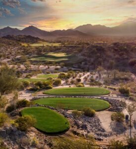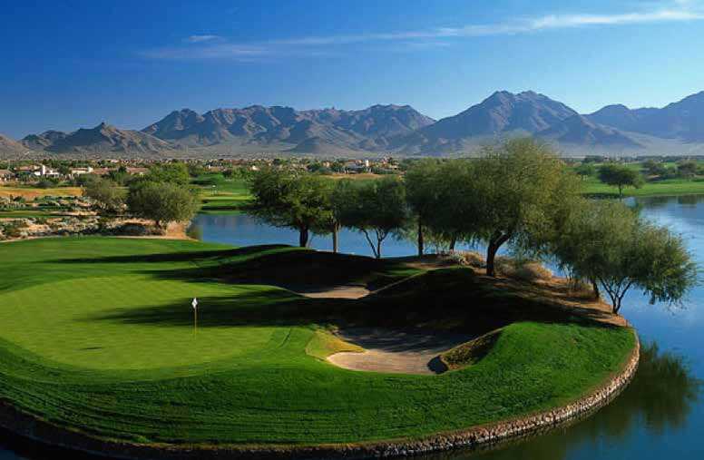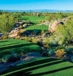 A second strong option is the Trilogy Golf Club at Vistancia in Peoria. Architect Gary Panks crafted a distinctive 7,291-yard, par-72 design that features a variety of artistically sculpted bunkers, many that are traditional hazards and others that serve as transitions from the green grass to the native desert areas. The two watery closing holes form an exciting, attractive finish.